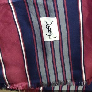 ❤️YSL MENS Yves Saint Laurent Oblong 56 x 16.5 Navy Burgundy Gray & White Scarf