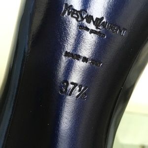 This listing is for a simply gorgeous pair of YSL Metallic Marine Blue 140 Pumps size 37.5. The shoes are brand new in box - never worn. A dark navy with a metallic sheen it is hard to say how gorgeous they are! Although they are 140mm there is a hidden platform of approximately 30mm internally which makes it easy to walk. These shoes are a classic and instantly recognizable by fashion lovers everywhere!