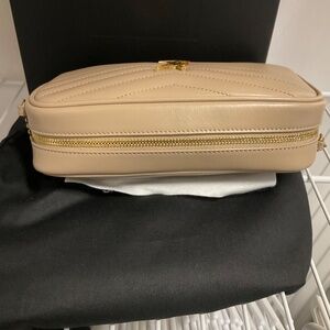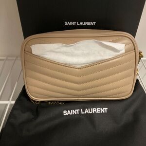 Dark Beige. Brand New, Never Used. Please inspect photos carefully. Slight indentation on the bottom of the bag due to the way it was stored with the chain.