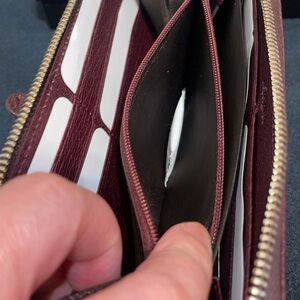 This elegant deep purple leather wallet is perfect for any occasion. Crafted with high-quality materials, it features a stylish design and secure closure. Ideal for keeping your essentials organized