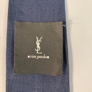 YVES SAINT LAURENT Rive Gauche necktie in a navy knit fabric featuring skinny style.
