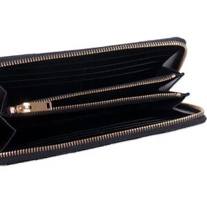A continental zip-around style, reminiscent of the Yves Saint Laurent heritage, fashioned with a bold monogram detail and pebble-grained leather.