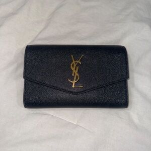 It’s an Original YSL purse that can be used as a Clutch or a purse. It’s black with gold accent.