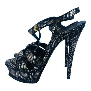 Size 8.5 (38.5) black and gold platform sandals from YSL.