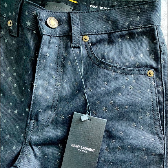 NEW Saint Laurent Womens Skinny Jeans Black Laquered Stars Size 24 YSL MSRP $990