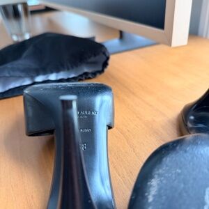 Black open toe heels, minor scuffing on heels (see photos). Includes dust bag.