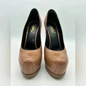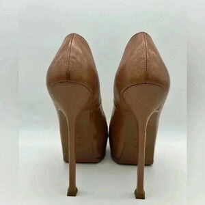 YSL SAINT LAURENT $795 TRIBTOO TRIBUTE LEATHER PUMPS SHOES EU 37.5 ITALY Caramel