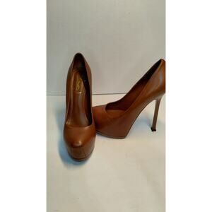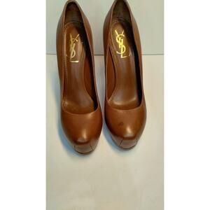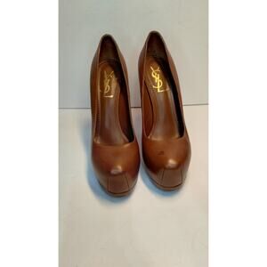 YSL SAINT LAURENT TRIBTOO TRIBUTE Brown Leather Pumps Shoes EU 38