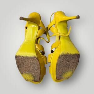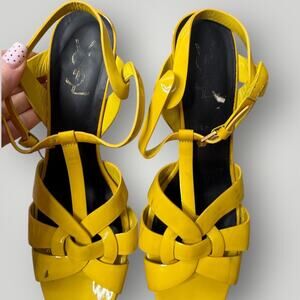 YSL, SAINT LAURENT TRIBUTE LEATHER PLATFORM HEEL SANDALS Size 42