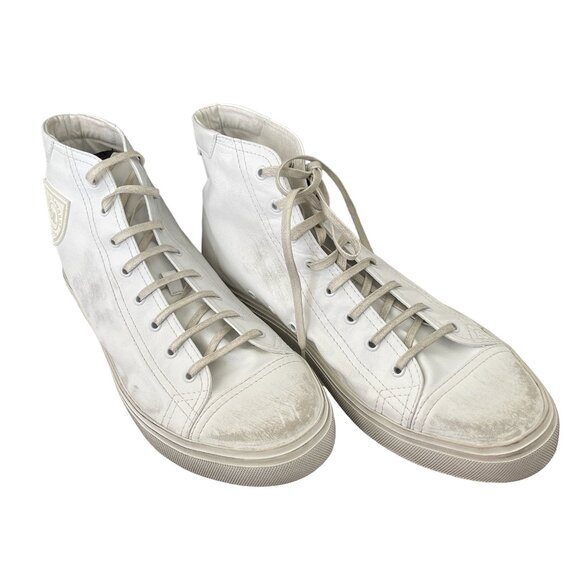 YSL Saint Laurent 561240 White Distressed Men's High Top Sneakers Shoes 46