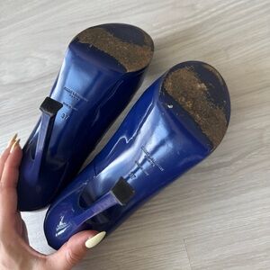 YSL Saint Laurent Blue Patent Leather Tribtoo Women's high pumps Heels 37 US 6.5