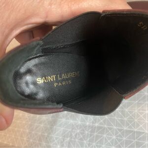 YSL Saint Laurent Ela Chelsea Burgundy Calfskin Stiletto Boots 36.5