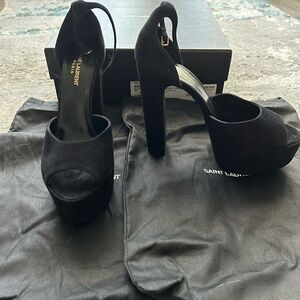 YSL Saint Laurent Jodie suede platform sandals 9 comes with original box and dust bags. Total heel 5.3, platform 1.6. Selling just because I got a similar with pearl from Jimmy Choi. Never had a chance to wear them