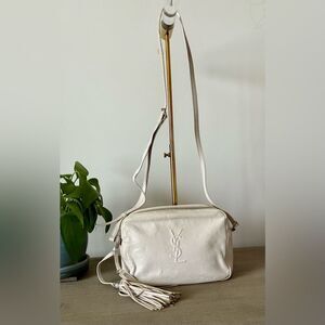 YSL Saint Laurent Lambskin Monogram Small Lou Camera Bag in White