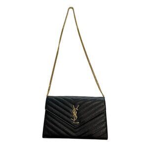 YSL Saint Laurent Metalasse Chain Envelope Bag in Black
