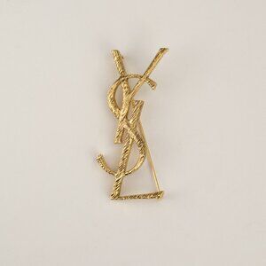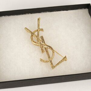 Saint Laurent’s iconic interlocking logo, originally designed in 1961 by graphic artist A.M. Cassandre, remains one of the most enduring symbols in fashion. A true blend of artistry and heritage, the YSL insignia embodies Cassandre’s genius in merging sans and serif typography into a bold, timeless mark. Here, it takes center stage once more, engraved with vintage-inspired detailing that adds depth and dimension. This brooch reimagines the legendary monogram in polished gold-tone brass, expertly crafted in Thailand with a subtle 3D brushed texture that catches the light from every angle. Pin it to the lapel of a blazer, or even a scarf, and instantly transform your look into an elegant statement of fashion history.
