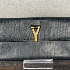 YSL Saint Laurent Paris Y Line Calfskin Leather Long Wallet in great preloved condition. Minor signs of wear so please review the pictures and ask question. Wear on the hardware, but otherwise no major callouts.