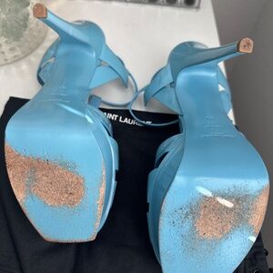 YSL Saint Laurent Tribute Platform In Patent Leather Sandals. Size 40. Please see closeup pictures for minor markings on the foot strap. Not really noticeable. Worn once!