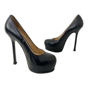 YSL Saint Laurent Womens 37.5 Tribute Stiletto Heel Leather Platform Pumps
