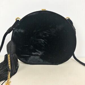 YSL Saint Laurent Womens Velvet Minaudiere Black Nero Shoulder Bag Tassel