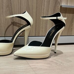 YSL Saint Laurent patent leather D’orsay pumps, color- cream, size- 37