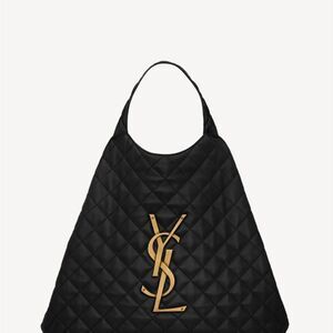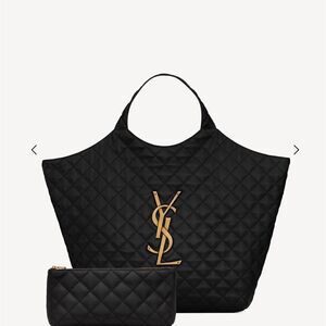 YSL, Saint Laurent iCare Tote Bag and Pouch, Black Quilted Leather