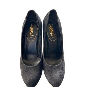 YSL Saint Maryna Black Suede Wedge Sandals sz 38.5 Euro size 8