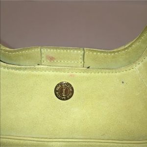 AUTHENTIC Gently used and in good condition. Yellow/Green Suede. Very rare/unique bag with Mombasa Lucite Horn Handle. Minor color markings on suede as seen in pics. Perfect and clean inner lining.