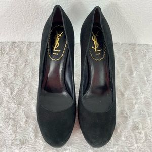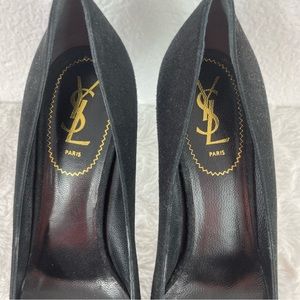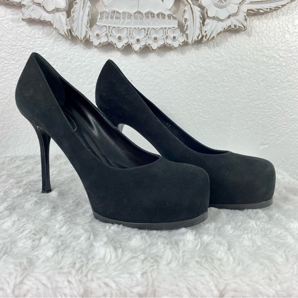 {YSL} Tribtoo 80 Black Suede Platform Pumps, Size 41/11