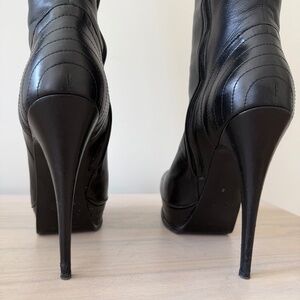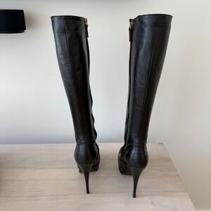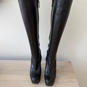 YSL Nappa Leather Tribute 105 platform knee high boots. Well-made and in good condition. Some signs of wear on the heel (repairable).