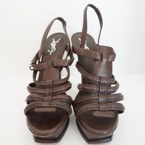 YSL Tribute Ysl T-strap Leather Platform Sandals