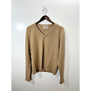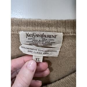 YSL VTG Women's Wool Cashmere V-Neck Sweater Size XL Brown Old Money Minimalist