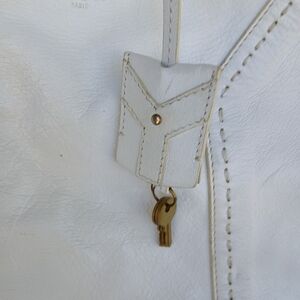This elegant authentic YSL vintage white leather handbag ready for a little rehab. Its sleek design and high-quality material make it a must-have for someone who wants to give it some love.