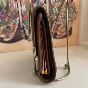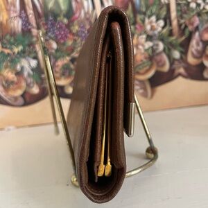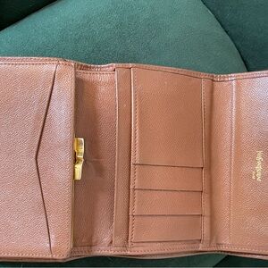 YSL Vintage Brown Leather Trifold Wallet with Internal Kisslock Coin Pocket