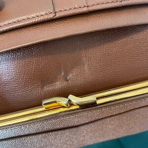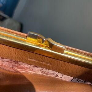 This beautiful vintage YSL is an incredibly beautiful, timeless piece. Featuring beautiful hardware covered corners and a durable exterior leather. The inside is absolutely clean, no scratching, rubbing or cracks, just imprint of the kisslock and some coin residue. It is made in Mexico.