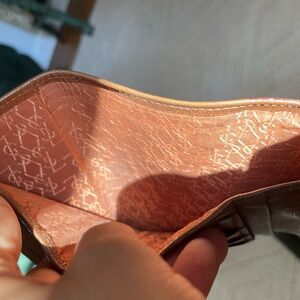 The exterior hardware has some rubbing and the YSL has some wear from opening it over the years. The back has some sticky-ish material that can be removed. Some of the edges do have rubbing and slight discoloration. No tears of leather or fabric inside pockets.