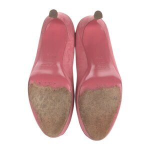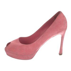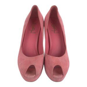 YSL Women's Pink Suede Pink Bottom Peep Toe Pumps, 37.5 / 7
