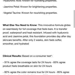 A breathable liquid foundation with SPF 30 that delivers up to 24h full coverage with a weightless feel and blurred, natural matte finish. Transfer-proof, waterproof, heat resistant. The unique finish leaves skin looking healthy. Infused with hyaluronic acid and Jasmine petal, this foundation provides day after day skincare benefits. After only 2 weeks, skin feels softer, smoother, and hydrated.
