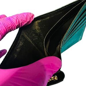 Excellent exterior condition with minor signs of wear. Very good Interior condition with some dryness in the kisslock pouch and some color rubbed off in the bill fold area.