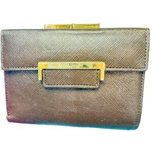 YSL YVES SAINT LAURENT Dark Brown Goldtone Saffiano Leather Kisslock Wallet Bag