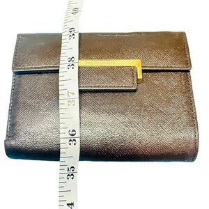 YSL YVES SAINT LAURENT Dark Brown Goldtone Saffiano Leather Kisslock Wallet Bag Card Holder with COA