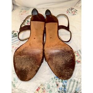 VERY GOOD CONDITION YSL SANDALS IN 7N. BROWN SUEDE WITH GOLD STITCHING.