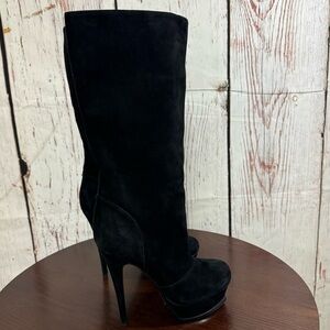 YSL YVES SAINT LAURENT nubuck suede knee high platforms boots in 37.5 EUC