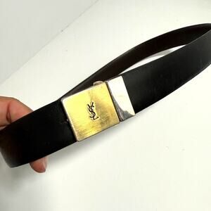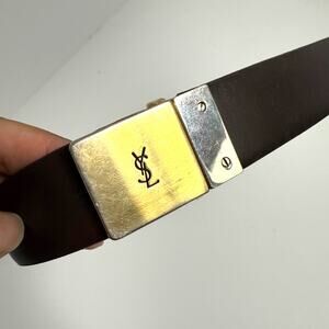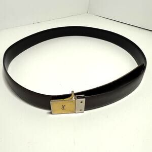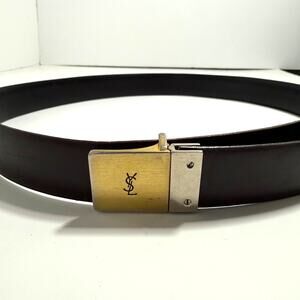 YSL Yves Saint Laurent 34 Mens Reversible Belt Brown Black Leather Gold Silver Buckle *flaw
