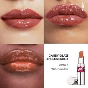 YSL Yves Saint Laurent Candy Glaze Lipgloss Stick in the color 4 Nude Pleasure. Brand new, authentic, in box. One available for purchase.