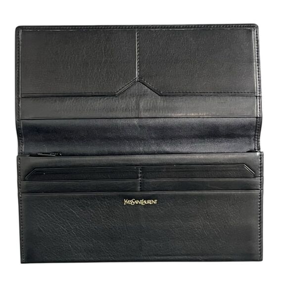 YSL Yves Saint Laurent Black Leather Long Wallet Clutch Bifold
