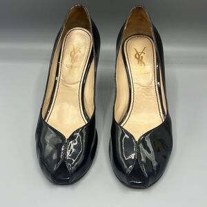 YSL Yves Saint Laurent black Patent Leather Peep Toe Heels.