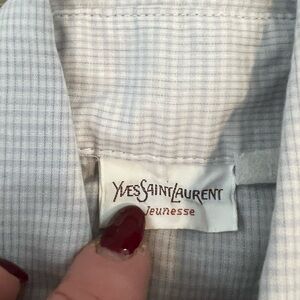 YSL Yves Saint Laurent Boys Button Up Shirt Blue 7/8 Long Sleeve Mini Check