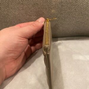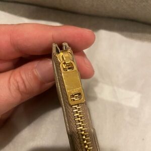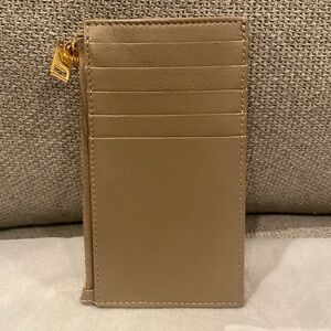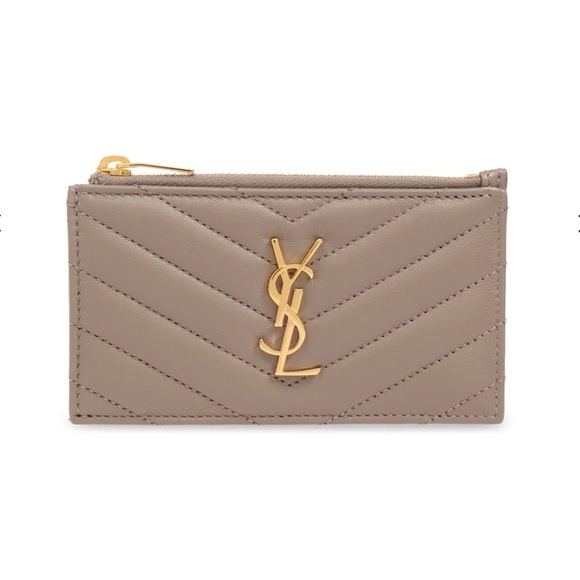 YSL Saint Laurent Taupe Cassandre Card Case Zipper Wallet