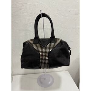 YSL Yves Saint Laurent Chevre Leather Rock Stud Large Easy Y Shoulder Bag Black